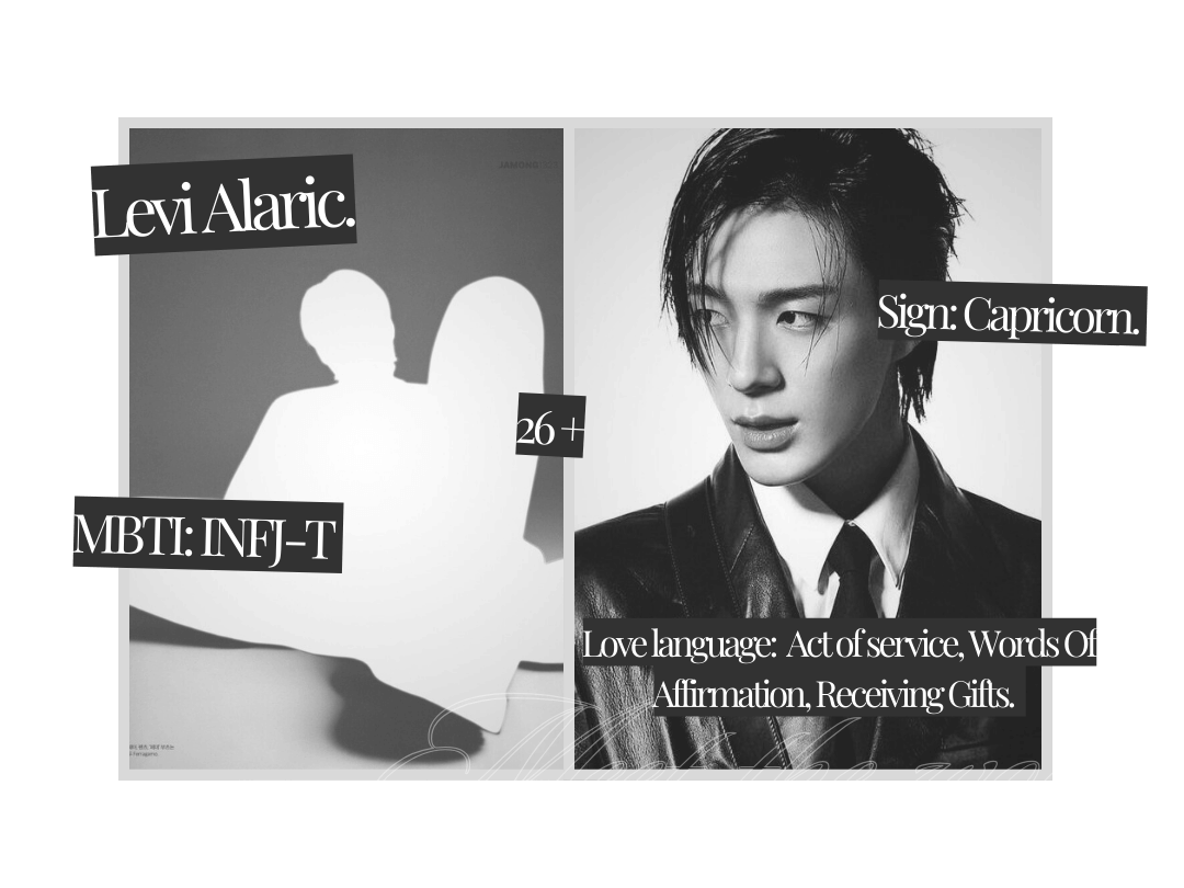 My love language is obsession and insanity. I don't know how to tell you that I love you, perhaps because there words could never justify exactly how I feel for you. I will show you how I will love you with all my heart together with me, a man who just wants to spread love as wide as his sincere heart. Every action is part of his soft and deep heart. I am known as a man who is always called Levi Alaric. But I don't mind if you call me anything than Levi or Al, but for you, you can call me love instead of my name. Oh absolutely, I would be honored if you had a nickname for me, baby.I am a man who has a caring personality towards someone, soft-spoken, sweet talker, good listener, and posesif. I am very easily jealous and possessive of a partner but still someone who is affectionate. I am someone who often acts naughty towards my partner, likes to tease and pamper you.I am just a stupid romantic man, but I really like to give something romantic like a song to listen together, give romantic words, show the whole world that I have you. Maybe people see me for the first time as the type who is indifferent from the outside but warm inside. Look ordinary but the warmth I give is extraordinary. I will treat you accordingly.I can do lovey-dovey and love-hate at the same time, because I love to tease my partner, maybe I prefer a love-hate relationship, but because I really like romance with my partner, I can do lovey-dovey things very well. I've said it before, my love language is being possessive, obsessed, and insane, but to be more complete, I really like Physical Touch, Receiving Gifts as a sign of love, Words Of Affirmation because I like to give sweet words to my partner, Acts Of service, which is very important as a man to be responsive to the needs of his partner.And for those of you who don't want to live a story like a lover, I can also play an active role as father figure, big brother, and best friend for you. Because I have a very high maturity, although sometimes mixed with my gentle nature. I will always celebrate you, whatever you will do I will appreciate because you deserve to get a lot of appreciation.Some facts about me, I really like writing and reading books. I will write when I have no work to do. I might be the writer but you'll always be the words. However, reading books and writing are not just hobbies for me. They are an extension of my soul, a channel through which I express the intricacies of my being.Knowing the songs I listen to, my taste in music is actually random. I really like music like RnB; Backstreet Boys, Boys II Men, The Script, Bruno Major, Chris Brown, typical old man stuff, but I still keep up with current songs like Keshi, Lany, The 1975, The Weekend, Bruno Mars, Taylor Swift, Artic Monkey, Cigarettes After Sex, Wave to Earth, Chase Atlantic, Hindia, Nadhif, Reality Club, Fourtwnty, and many more. Maybe we can exchange playlists if we desire to? I wish you'd have the same desire as me.The movie genres that I usually watch are Thriller, Sci-fi, Action and Fantasy. Or movies that usually contain conspiracies and unusual plot twists. Oh yes, thin Rom-Com is also my favorite when I'm bored. I have watched many movies especially from Korea and Hollywood. Who knows, maybe we can talk about those movies together, it would be really fun to have someone who understands your favorite movie genre.CW // NSFW.I am a person who prefers vanilla to rough because I like wild partners. Before starting, I prefer to be teased by my naughty partner, because I will be even more savage when trying to fuck you. I really like a partner who has wild fantasies in they head, because that would make me capable of walking closer towards they. We're playing such dangerous games, touch me with a kiss feel me on your lips cause this is where i wanna be where it's so sweet and beautiful. Want me to satisfy you? Then kneel to beg for my dick.